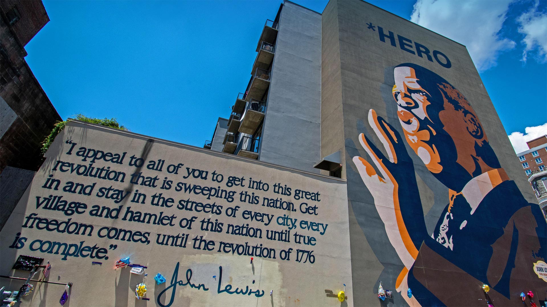 John Lewis hero mural by Sean Schwab in the Sweet Auburn district of Atlanta