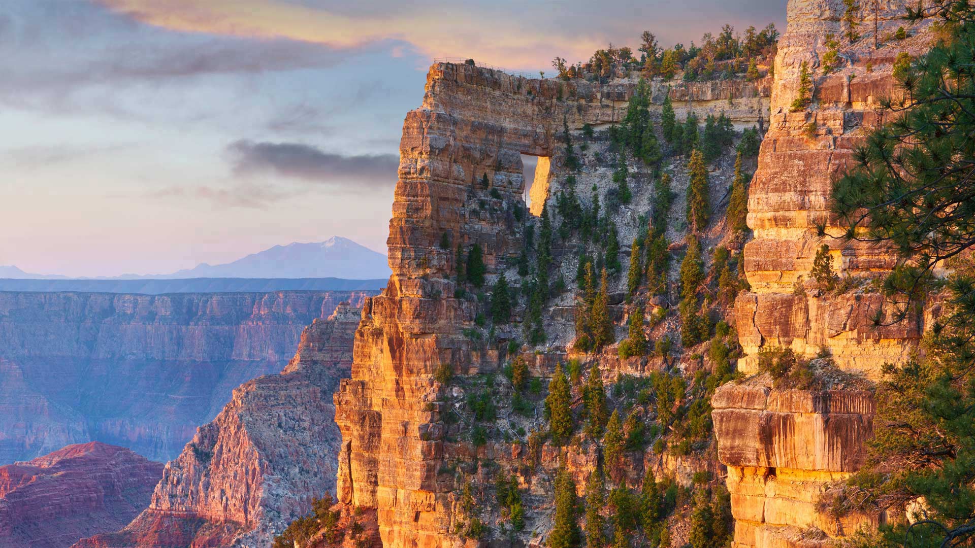 Peekaboo view of Angels Window on the North Rim of the Grand Canyon