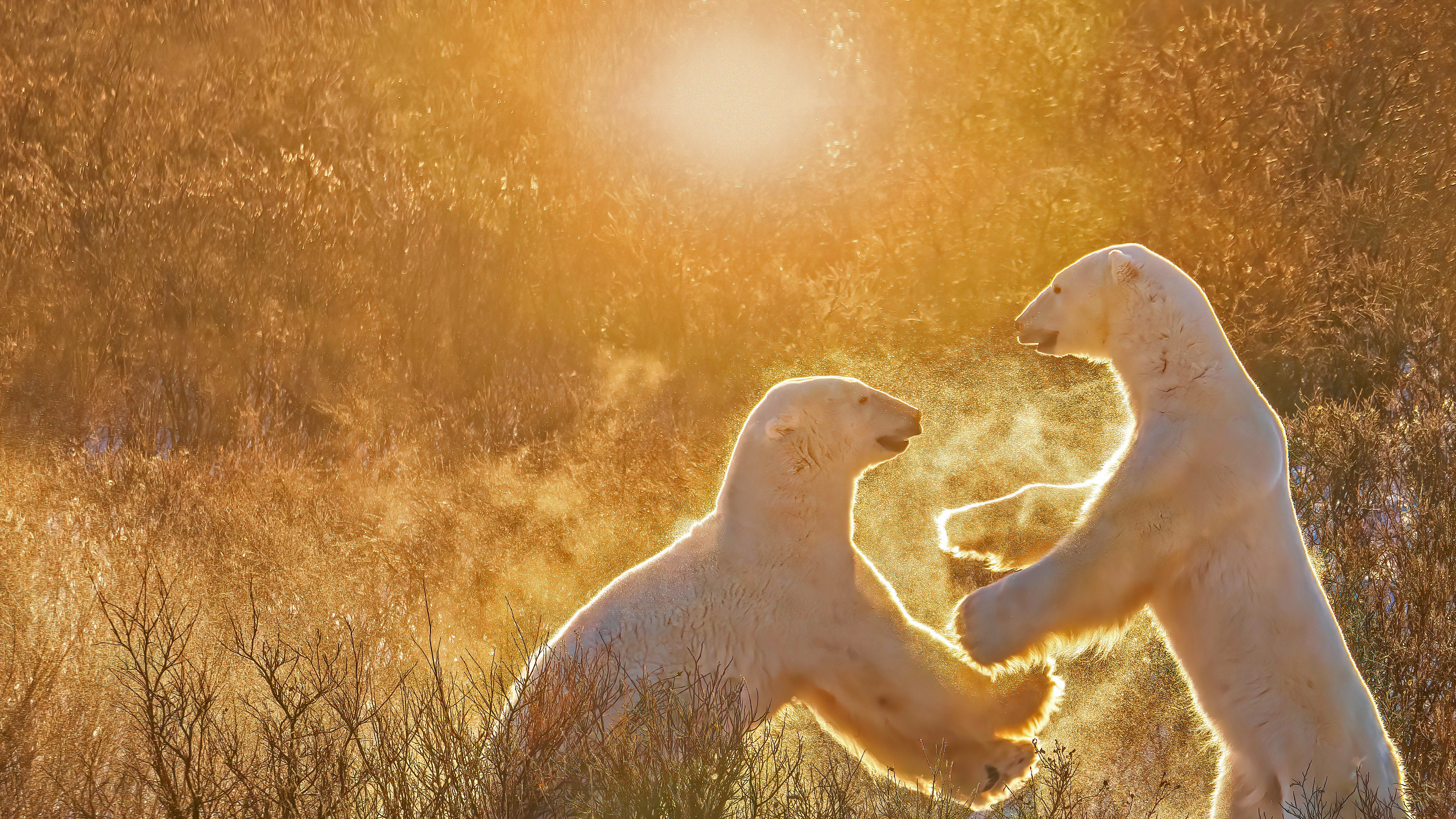 Two young male polar bears, Churchill, 马尼托巴, 加拿大 (© Cheryl Ramalho/盖蒂图片社)