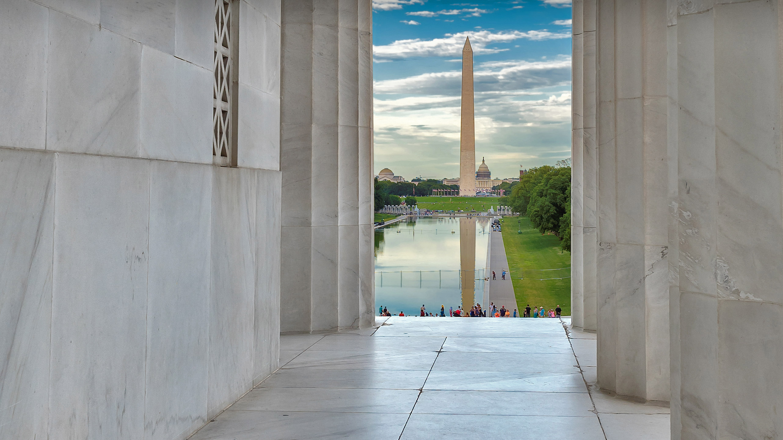 The Washington Monument seen from the Lincoln Memorial in Washington