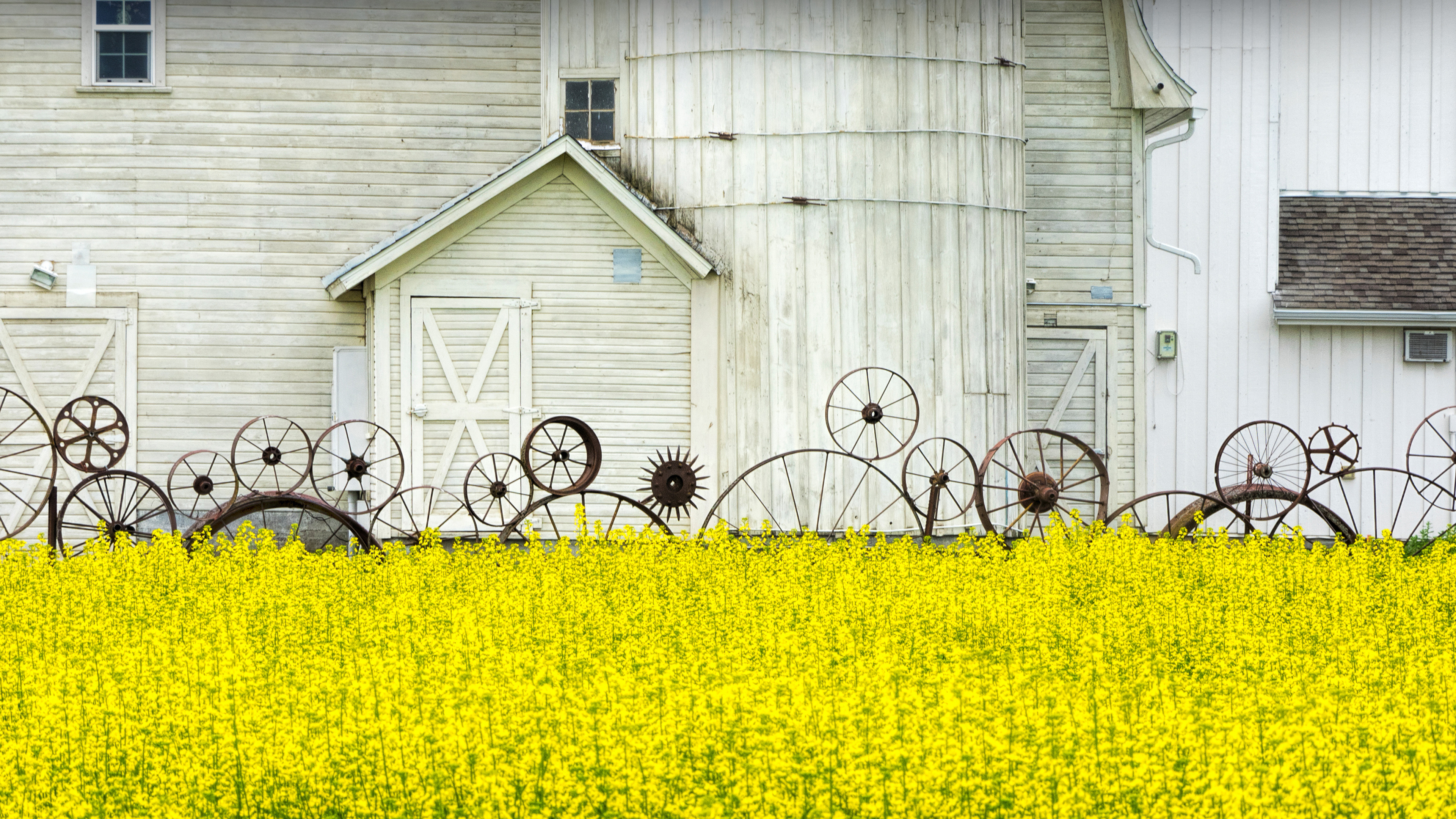 Old barn and canola field, Palouse region, 爱达荷州 (© Terry Eggers/盖蒂图片社)