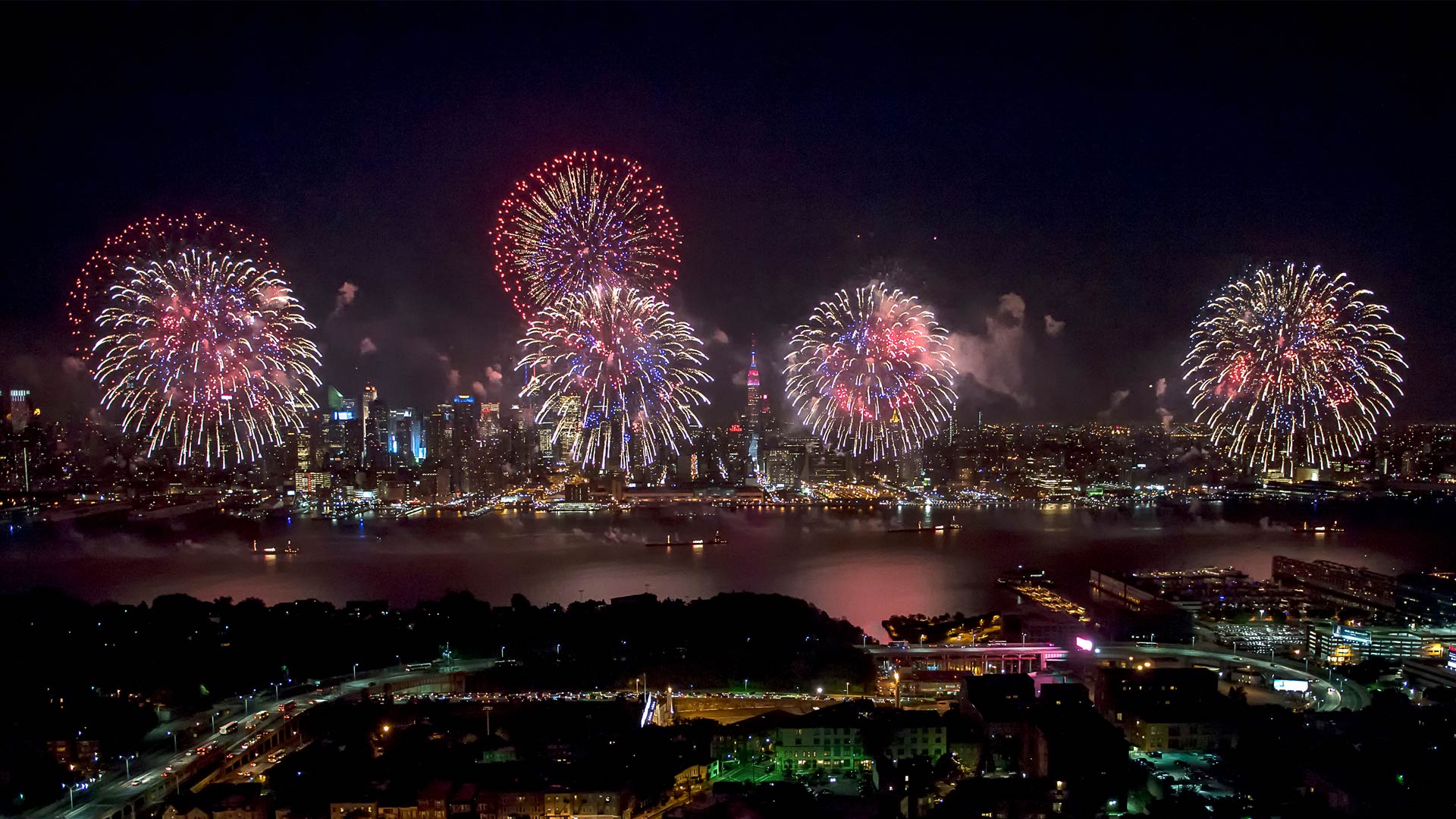 Fireworks over the Hudson River on the Fourth of July, 纽约州 (© 纽约州 on Air/Shutterstock)