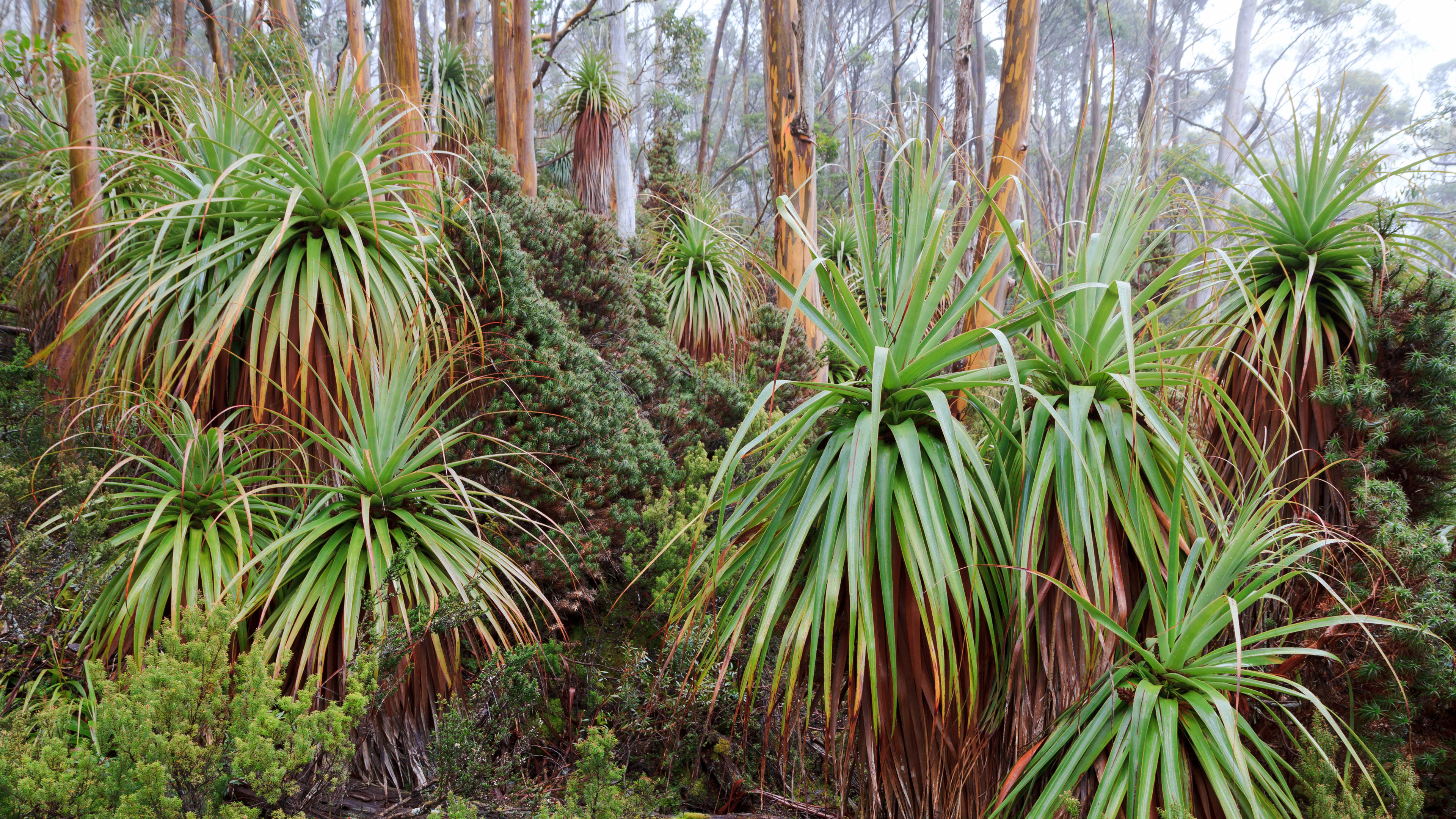 Tasmanian snow gum and pandani plants near Lake Dobson